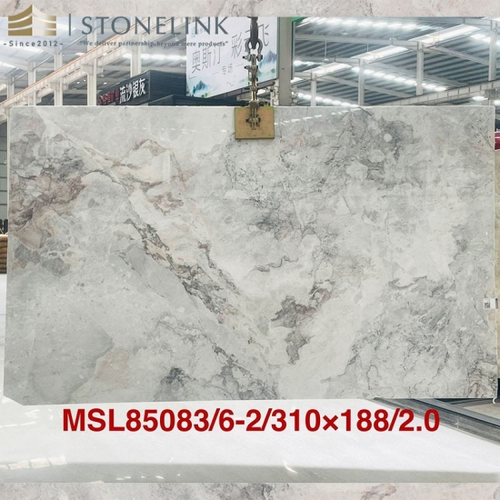 Milan Pembe Four Seasons mermer levha, STONELINK'in Four Seasons ocağından elde edilen birinci sınıf bir doğal taştır. Açık kırık beyaz bir arka plana, hafif pembe alt tonlara ve yumuşak gri-kahverengi damarlara sahiptir. Dokusu ince ve tutarlıdır ve akıcı damar desenleri, dengeli ve modern bir estetik sunar.